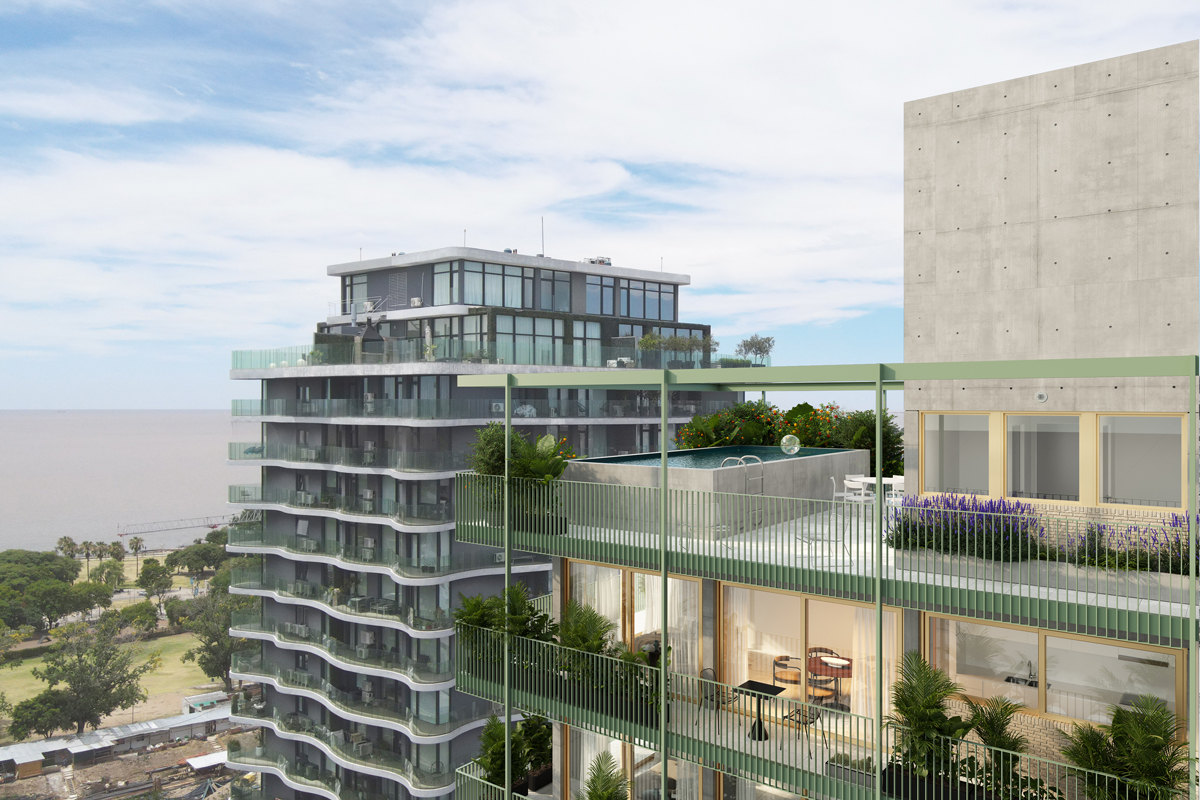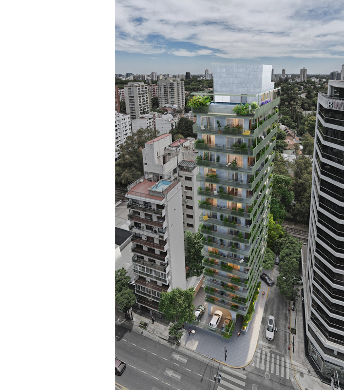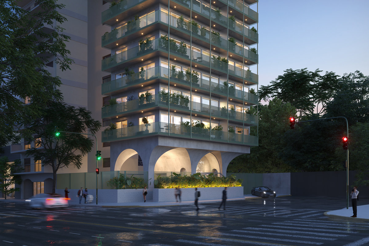 Estratégicamente ubicado en la esquina de Av. del Libertador y Arenales, en Vicente López, este proyecto se encuentra en plena fase de ejecución y está destinado a distinguirse por características que lo vuelven único. La transición identitaria de la planta baja se eleva en arcos de medio punto para generar una espacialidad muy personal y permitir que el edificio gane en altura y luz natural, ofreciendo la libertad de elegir entre el ritmo vibrante de la avenida y sus innumerables propuestas, o detenerlo todo y entrar en contacto directo con el entorno natural que ofrece el río.