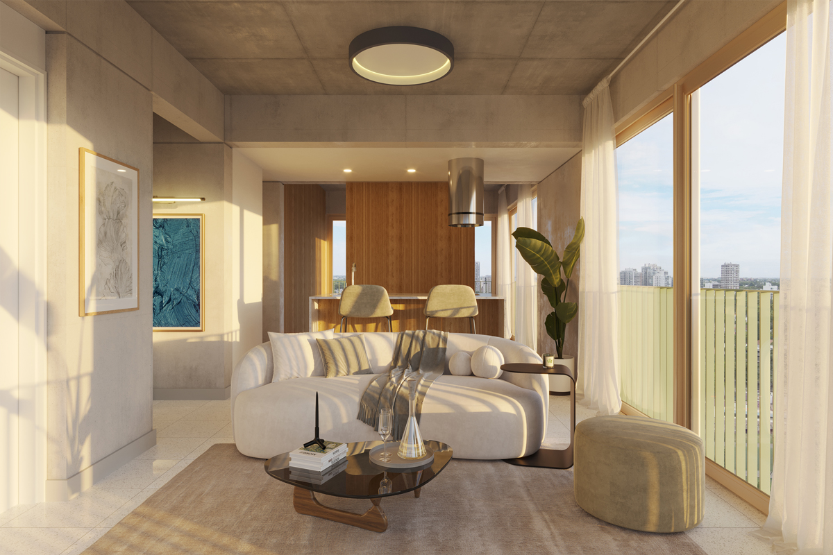 Cada unidad presenta plantas limpias, simetrías, grandes superficies vidriadas y espacios apaisados que aportan mayor amplitud. Estructuras flexibles y una paleta cromática neutra generan una sensación de lienzo en blanco bañado por el sol, con vistas al río y a los espacios verdes. En Propio Libertador, la propuesta es vivir a un ritmo propio.
